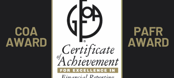 COA and PAFR Awards for Excellence in Financial Reporting. These awards are issued by the GFOA and are the highest form of recognition in the area of government accounting and financial reporting.Read More…