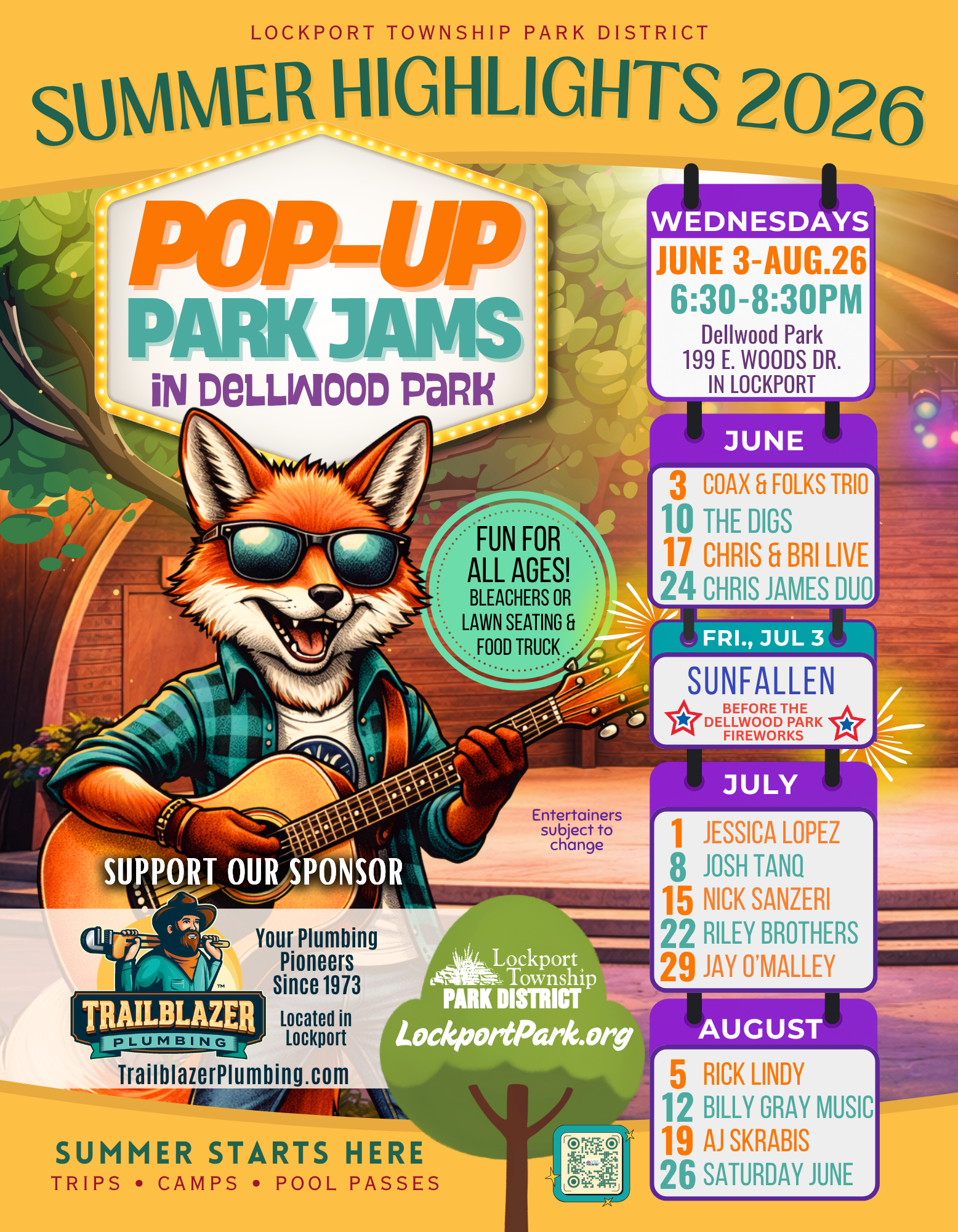 Date: July 15, 2026 Time: 6:30 pm – 8:30 pm Location: Dellwood Park Street: Route 171 & Woods Drive City: Lockport State: IL Zip: 60441